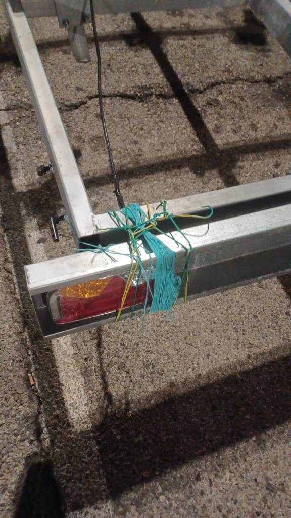 Con ese pedazo de bicho me dirigí al puerto de Valencia y justo a veinte metros de la barrera de entrada…¡Zas! Se me cayó el soporte de los intermitentes traseros del remolque, un fallo de soldadura. A mi que me pilló de nuevo, que no llevaba el kit repara-soldaduras de acero al niquel-cromo-vanadio-tungsteno , que tampoco andaba muy fino de ideas, me dio por resolver la ecuación de cuarta incógnita con un ovillo de lana que tenía en mi misma puerta.